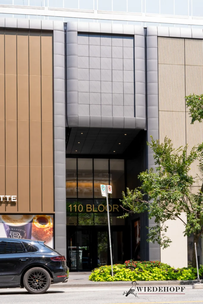 Wiedehopf proudly presents a portfolio of high-end commercial aluminum panel store front projects located throughout Toronto, Ontario. This collection of images showcases our expertise in modern architectural cladding, delivering durable, sophisticated, and visually striking facades for major commercial tenants.